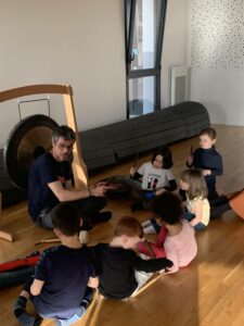 Éveiller les enfants à la musique et à tout ce qui la compose, à travers le jeu, la voix, la percussion, le mouvement et l’écoute.